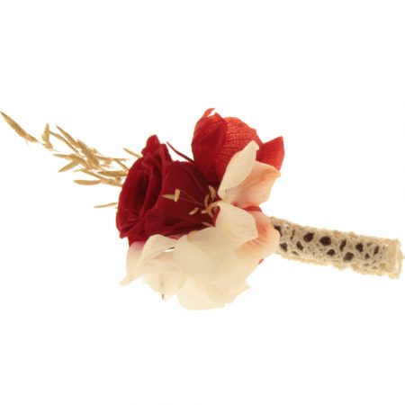 Combina todos los complementos de la colección Agripina para dar a tu boda un toque fresco, libre, dichoso… Este tocado está realizado en su totalidad por flores secas y preservadas, todas seleccionadas para que esté impecable durante mucho tiempo.