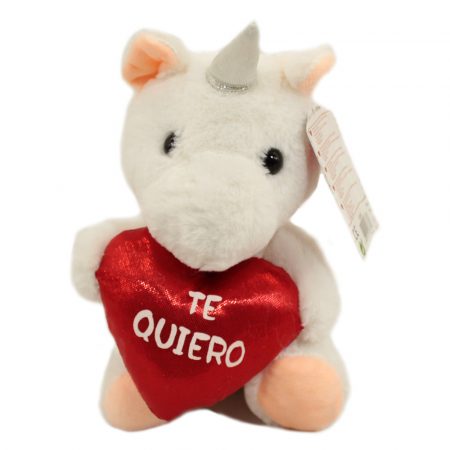 Unicornio de peluche muy suave con un corazón «tatuado» en la parte trasera.